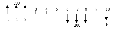 F=200×(F/A,10%,3)×(F/P,10%,8)-200×(F/A,10%,3)×(F/P,10%,2)