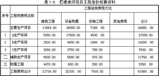 某企業(yè)擬興建一項工業(yè)生產(chǎn)項目。同行業(yè)同規(guī)模的已建類似項目工程造價結(jié)算資料見表1-6。