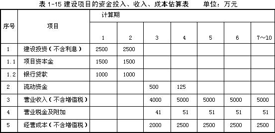 (3)建設(shè)項目的資金投入、收入、成本相關(guān)數(shù)據(jù)見表1-15。