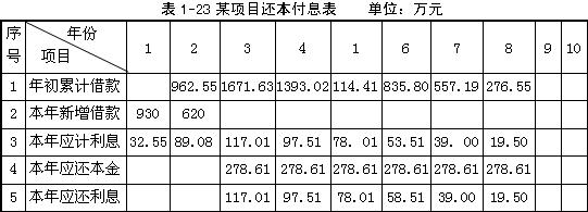 (2)編制項(xiàng)目還本付息表(將計(jì)算結(jié)果填入表1-8)。