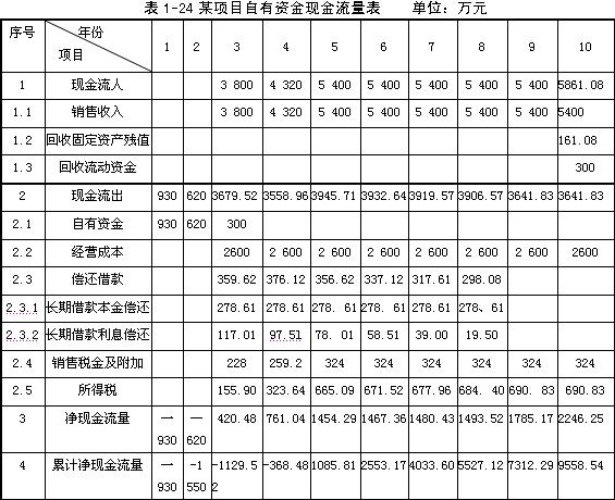 (4)編制項(xiàng)目現(xiàn)金流量表(將現(xiàn)金流量有關(guān)數(shù)據(jù)填人表1-9)。