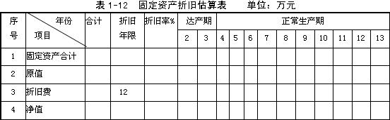 (2)根據(jù)表1-12和表1-13給定的格式分別填寫(xiě)項(xiàng)目的固定資產(chǎn)折舊費(fèi)估算表和無(wú)形及