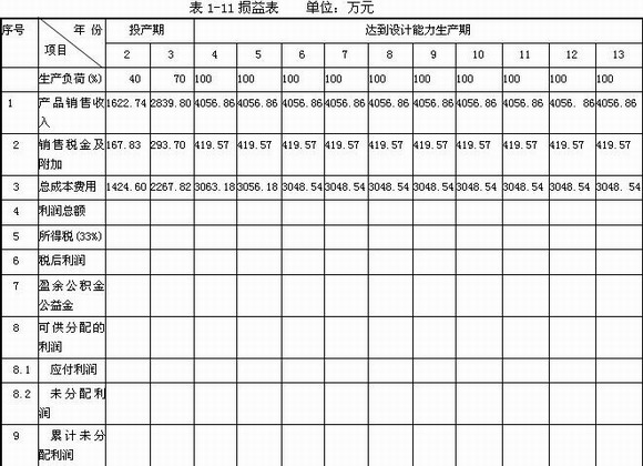 (5)項(xiàng)目損益表的格式和部分?jǐn)?shù)據(jù)見(jiàn)表1-11。
