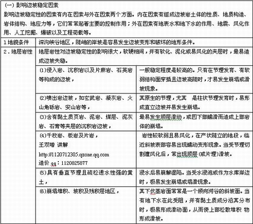 造價工程師輔導(dǎo)資料:影響邊坡穩(wěn)定因素