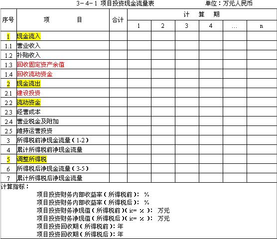 注: 1.本表適用于新設(shè)法人項(xiàng)目與既有法人項(xiàng)目的增量和“有項(xiàng)目”的現(xiàn)金流量分析。