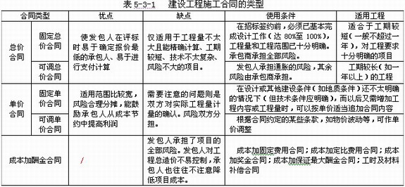 根據(jù)合同計價方式的不同,建設工程施工合同可以分為總價合同、單價合同和成本加酬金合同三種類型。見表5-3-1。