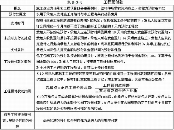 工程預(yù)付款及計(jì)算,見(jiàn)表6-3-4