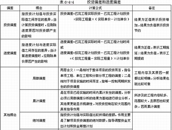 2、投資偏差和進(jìn)度偏差,見表6-4-4