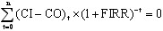 (2)財(cái)務(wù)內(nèi)部收益率(FIRR)。財(cái)務(wù)內(nèi)部收益率是指項(xiàng)目在整個(gè)計(jì)算期內(nèi)各年財(cái)務(wù)凈現(xiàn)金流量的現(xiàn)值之和等于零時(shí)的折現(xiàn)率,也就是使項(xiàng)目的財(cái)務(wù)凈現(xiàn)值等于零時(shí)的折現(xiàn)率,其表達(dá)式為: