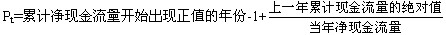 P't=累計(jì)凈現(xiàn)金流量現(xiàn)值開始出現(xiàn)正值的年份-1![]()