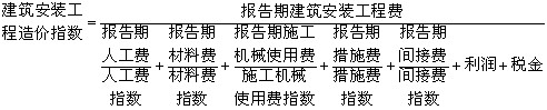 (1)人工費(fèi)、材料費(fèi)、施工機(jī)械使用費(fèi)等價(jià)格指數(shù)的編制。這種價(jià)格指數(shù)的編制可以直接用報(bào)告期價(jià)格與基期價(jià)格相比后得到。其計(jì)算公式如下:
