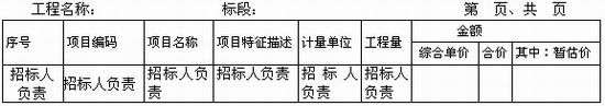 格式如下表 所示,在分部分項工程量清單的編制過程中,由招標(biāo)人負(fù)責(zé)前六項內(nèi)容填列,金額部分在編制招標(biāo)控制價或投標(biāo)報價時填列。