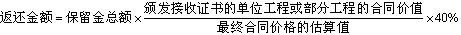 第一次,頒發(fā)工程接收證書后的返還。頒發(fā)了整個工程的接收證書時,將保留金的前一半支付給承包商。如果頒發(fā)的接收證書只是限于某單位工程或部分工程,則