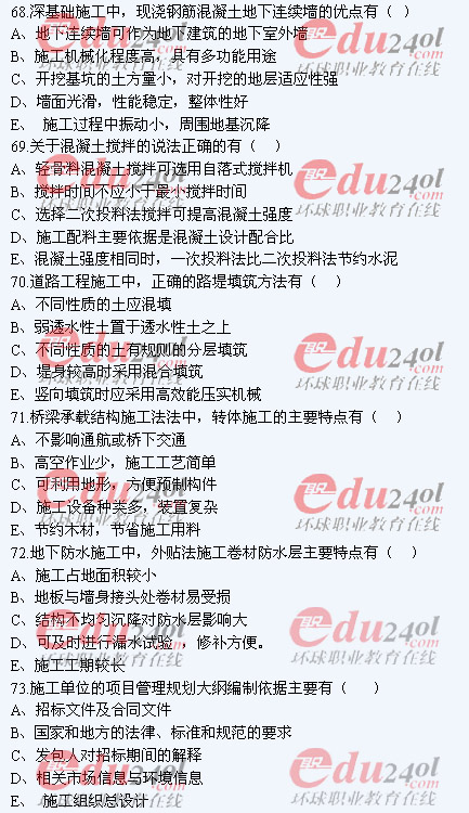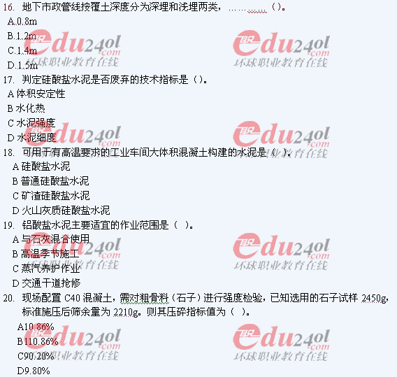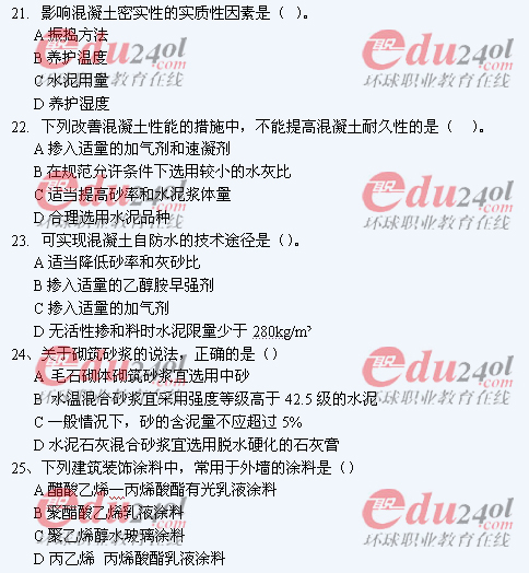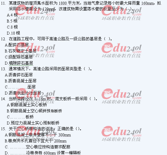 2011年注冊造價工程師考試《技術(shù)與計量(土建)》試題