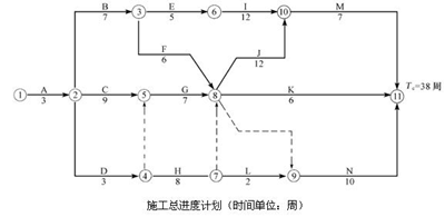利用標號法確定關(guān)鍵線路為:1-2-5-8-10-11或A-C-G-J-M