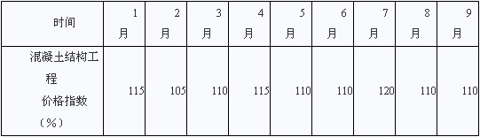 合同規(guī)定,混凝土結(jié)構(gòu)工程綜合單價為1000元/m3,按月結(jié)算。結(jié)算價按項目所在地混凝土結(jié)構(gòu)工程價格指數(shù)進行調(diào)整,項目實施期間各月的混凝土結(jié)構(gòu)工程價格指數(shù)如表2 所示。