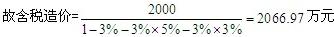 營(yíng)業(yè)稅=2066.97×3%=62.01萬元