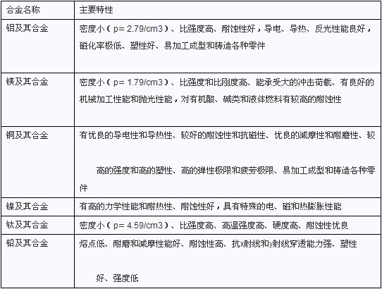 常用的有色金屬主要特性如表1.1.3所示。