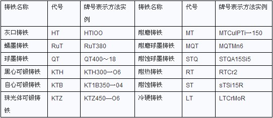 注:本表摘自現(xiàn)行國家標準《鑄鐵牌號表示方法》GB/T5612.