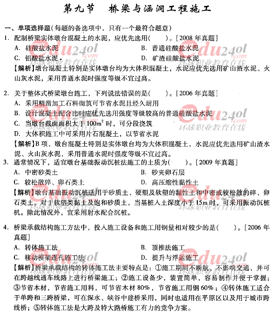 2012年造價(jià)工程師《技術(shù)與計(jì)量》(土建)過關(guān)必做試題及答案(7)