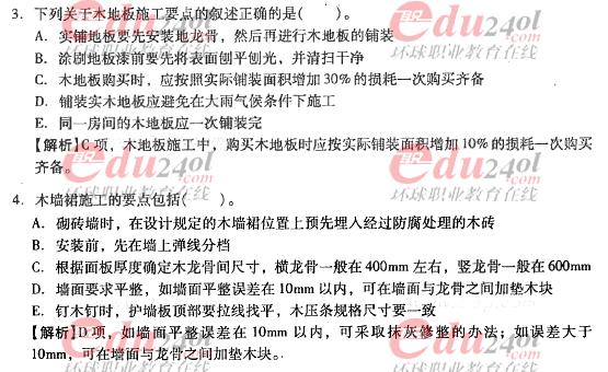 2012年造價工程師《技術(shù)與計量》(土建)過關(guān)必做試題及答案(3)