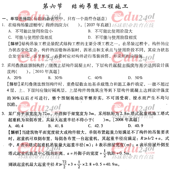 2012年造價(jià)工程師《技術(shù)與計(jì)量》(土建)過關(guān)必做試題及答案(4)
