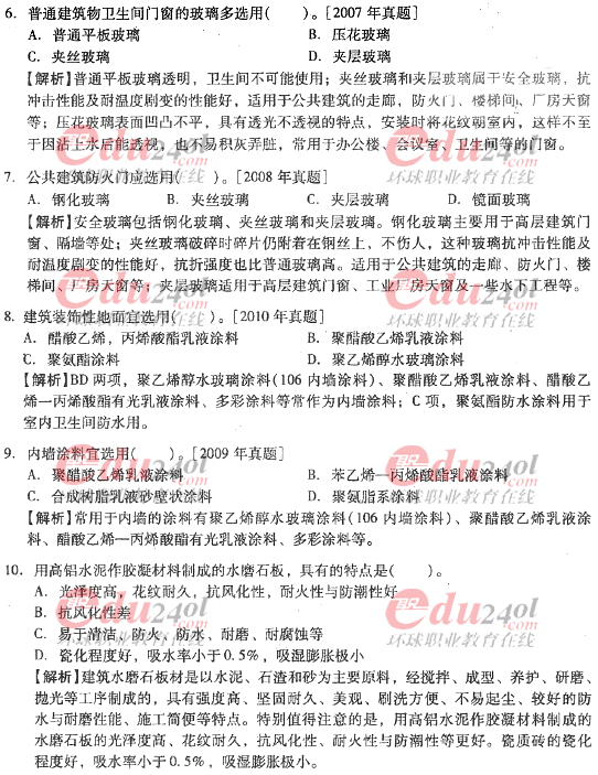 摘要 2012年造價工程師《技術(shù)與計量》(土建)過關(guān)必做試題及答案(七)主要內(nèi)容為第三章工程材料,第三節(jié):裝飾材料;第四節(jié):防水材料,單項選擇題、多項選擇題以及答案解析。