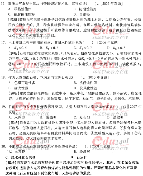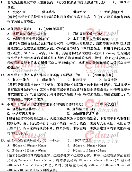摘要 2012年造價(jià)工程師《技術(shù)與計(jì)量》(土建)過(guò)關(guān)必做試題及答案(六)主要內(nèi)容為第三章工程材料,第二節(jié)結(jié)構(gòu)材料單項(xiàng)選擇題、多項(xiàng)選擇題以及答案解析。