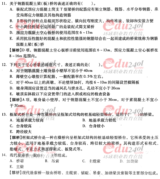 摘要 2012年造價工程師《技術(shù)與計量》(土建)過關(guān)必做試題及答案(四)主要內(nèi)容為第二章工程構(gòu)造第三節(jié)橋梁與涵洞工程;第四節(jié)地下工程單項選擇題、多項選擇題以及答案解析。