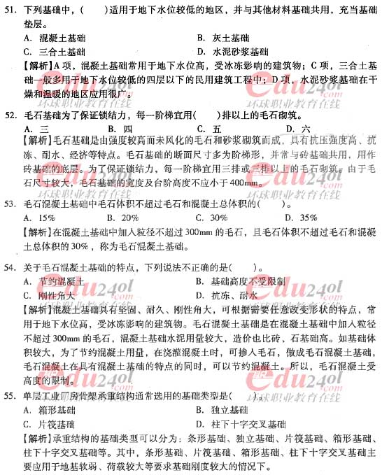 2012年造價工程師《技術與計量》(土建)過關必做試題及答案(6)