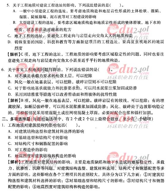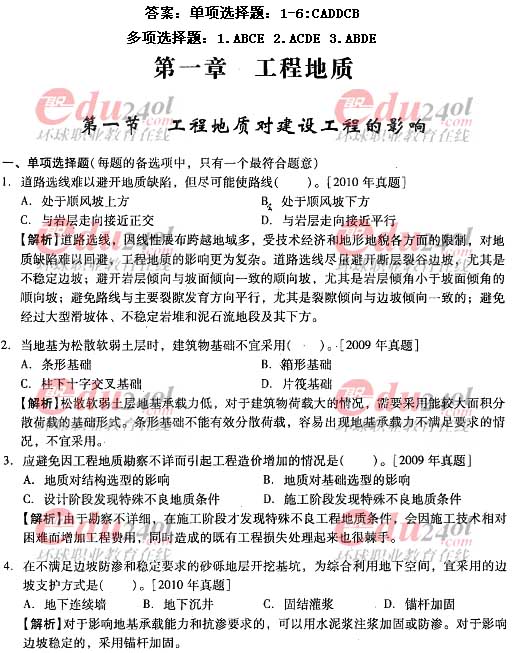 摘要 2012年造價工程師《技術(shù)與計量》(土建)過關(guān)必做試題及答案(一)主要內(nèi)容為第一章工程地質(zhì)第一節(jié)工程地址對建設(shè)工程的影響;第二節(jié)地質(zhì)巖性;第三節(jié)地質(zhì)構(gòu)造;第四節(jié)巖體特征單項選擇題、多項選擇題以及答案解析。