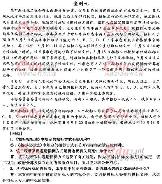 2012年造價工程師《案例分析》過關(guān)必做試題及答案(十一)