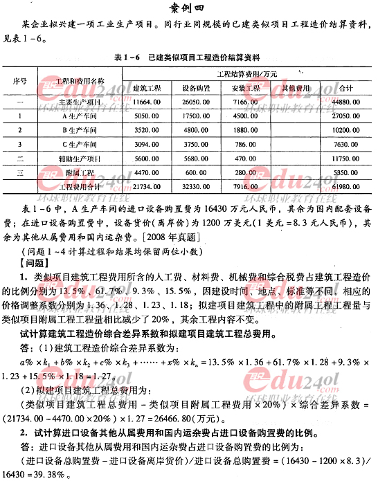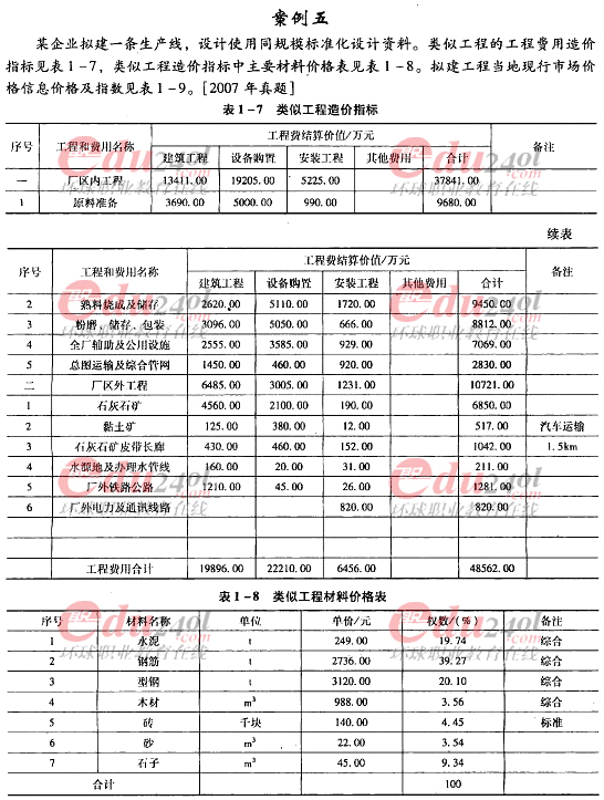 2012年造價(jià)工程師《案例分析》過(guò)關(guān)必做試題及答案(一)