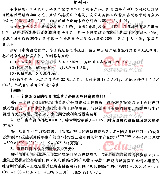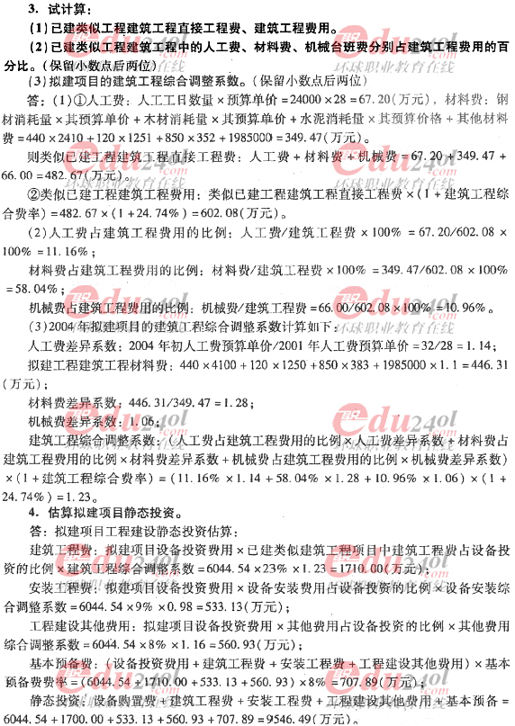 2012年造價工程師《案例分析》過關(guān)必做試題及答案(二)
