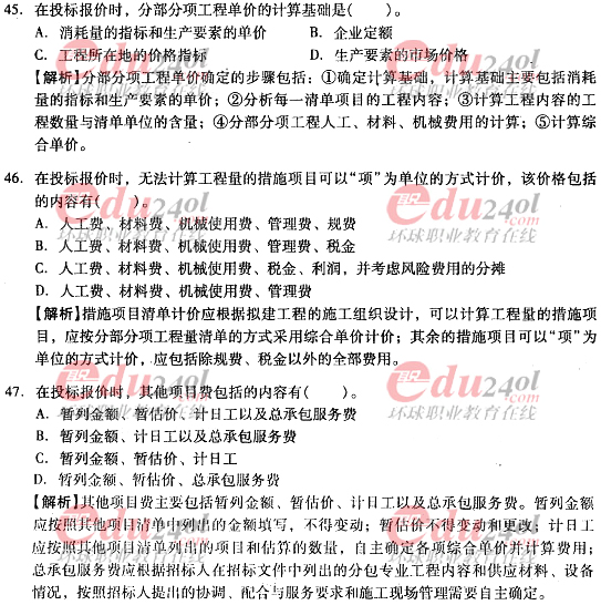 2012年造價工程師考試各科目過關(guān)必做試題及答案匯總