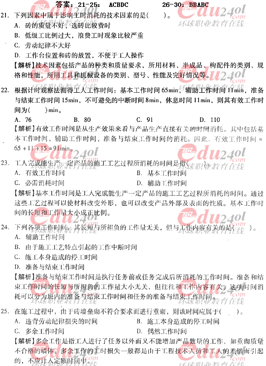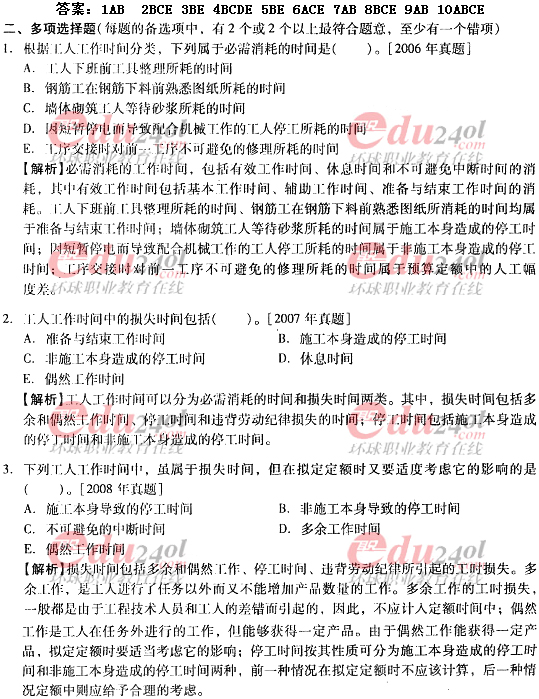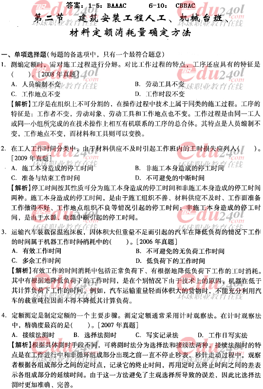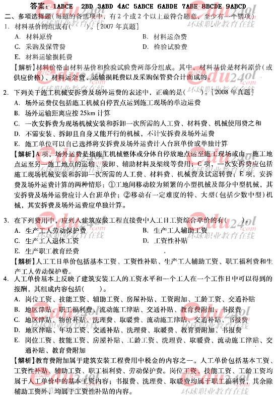 2012年造價(jià)工程師考試各科目過關(guān)必做試題及答案匯總