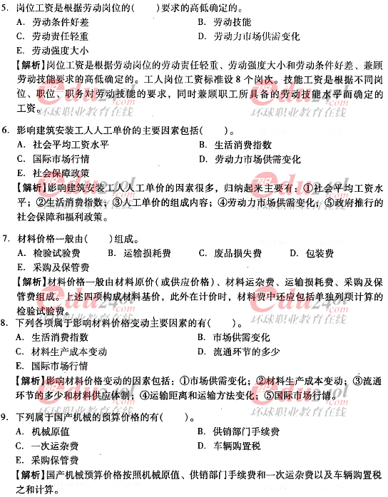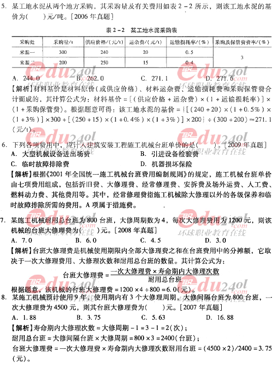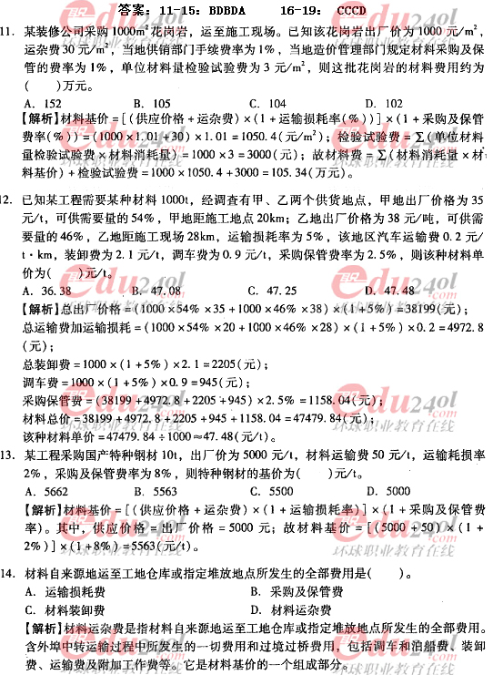 2012年造價(jià)工程師《計(jì)價(jià)與控制》過關(guān)必做試題及答案(五)