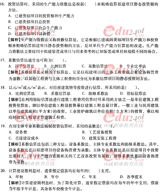 2012年造價工程師《計價與控制》過關(guān)必做試題及答案(八)