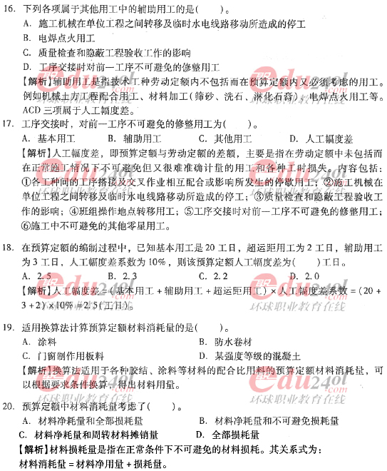 2012年造價(jià)工程師《計(jì)價(jià)與控制》過關(guān)必做試題及答案(六)