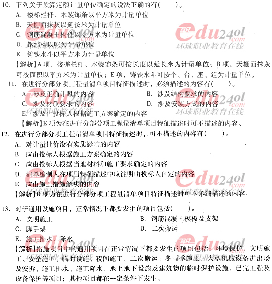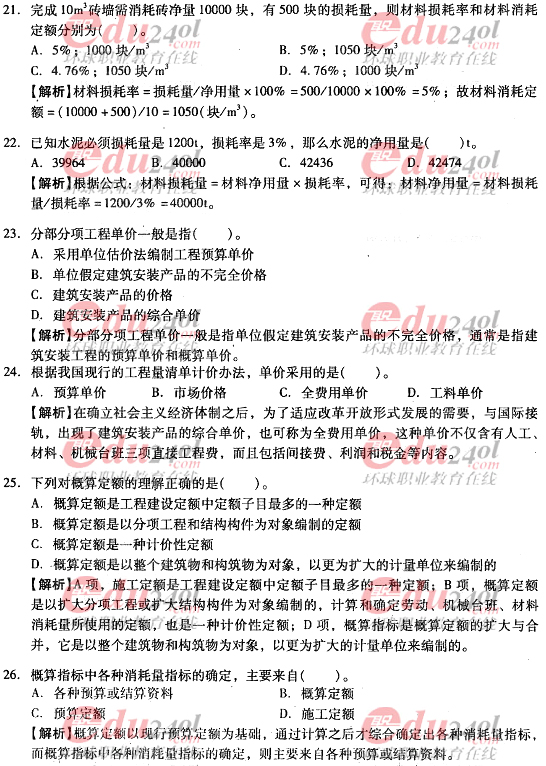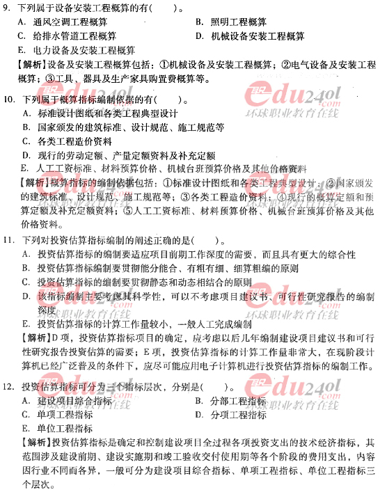 2012年造價(jià)工程師考試各科目過關(guān)必做試題及答案匯總