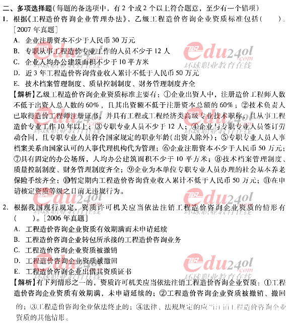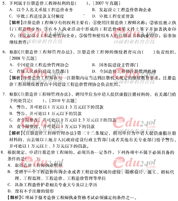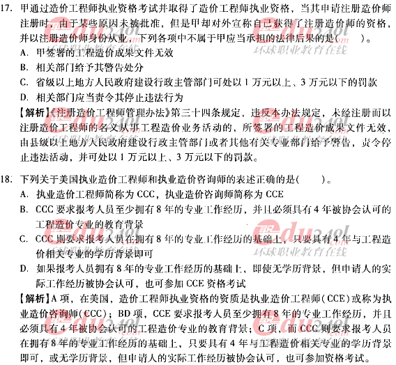 2012年造價(jià)工程師《理論與法規(guī)》過關(guān)必做試題及答案(二)