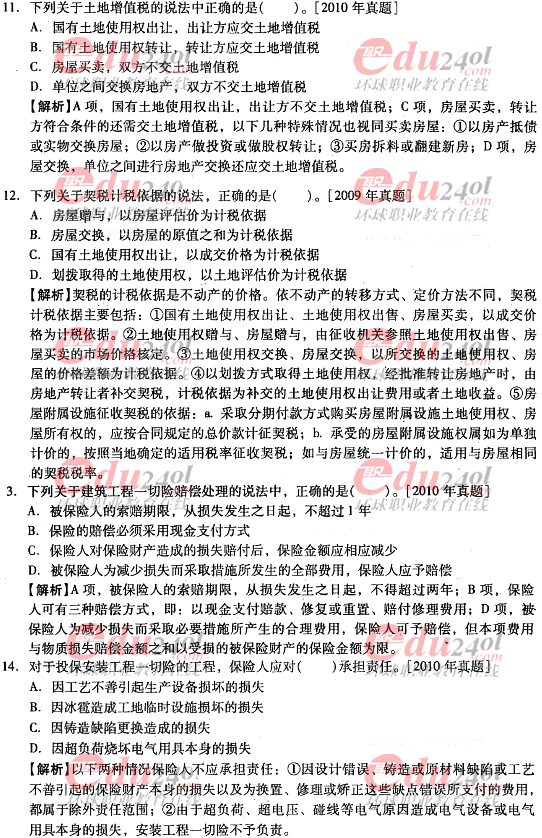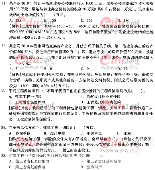 2012年造價(jià)工程師《理論與法規(guī)》過(guò)關(guān)必做試題及答案(十)