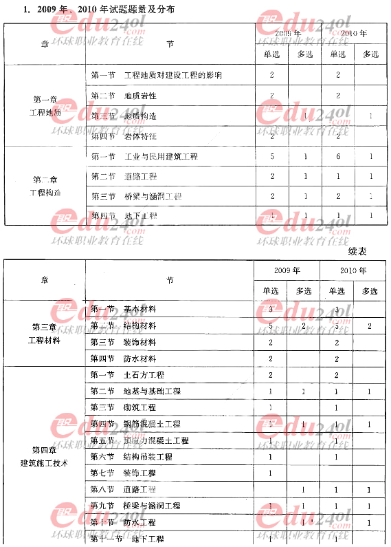 造價工程師《技術與計量》(土建)歷年考試特點及題量分布
