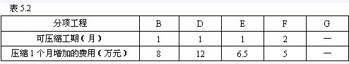 3、若承包方?jīng)Q定在第6個月后調(diào)整進(jìn)度計(jì)劃以確保實(shí)現(xiàn)合同工期,應(yīng)如何調(diào)整(有關(guān)分項(xiàng)工程可壓縮的工期和相應(yīng)增加的費(fèi)用見表5.2)?說明理由。