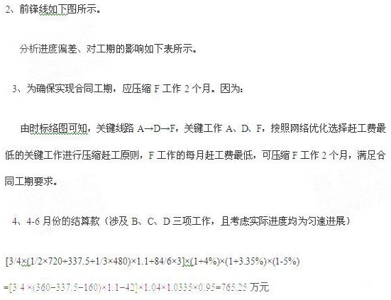 4、按實(shí)際進(jìn)度情況結(jié)算,第4~6月應(yīng)簽發(fā)工程款為多少萬元(假設(shè)期間無其他項(xiàng)目費(fèi)發(fā)生,a工作按批準(zhǔn)進(jìn)度計(jì)劃完成)?