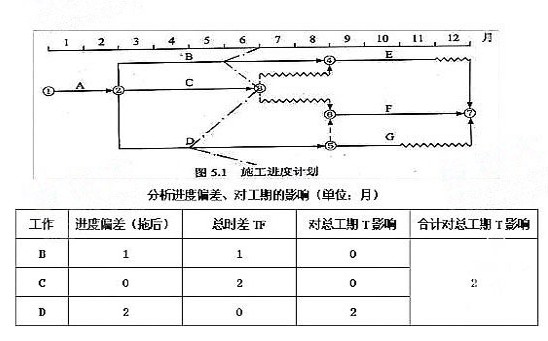2、根據(jù)第6個月末檢查結(jié)果,在答題紙圖5.1上繪制前鋒線,并分析第6個月末b、c、d三項(xiàng)工作的進(jìn)度偏差,如果后6個月按原計(jì)劃進(jìn)行,分析說明b、d工作對工期的影響影響。