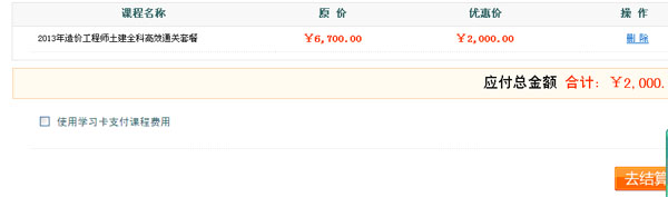 2013年造價工程師高效通關套餐升級支付操作步驟