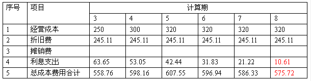 第8年的現(xiàn)金流出=(項目資本金+借款本金償還+借款利息支付+經(jīng)營成本+營業(yè)稅金及附加+所得稅)