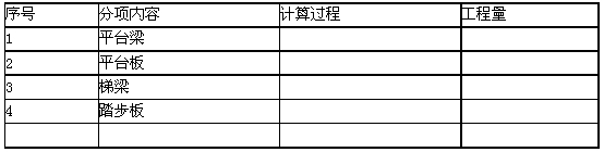 1.按照局部結(jié)構(gòu)布置圖6.Ⅰ,在答題紙上表6.Ⅰ.1“工程量計(jì)算表”中,列式計(jì)算樓梯的現(xiàn)澆鋼筋混凝土體積工程量。