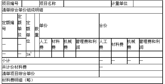 表6.1.2工程量清單綜合單價(jià)分析表
